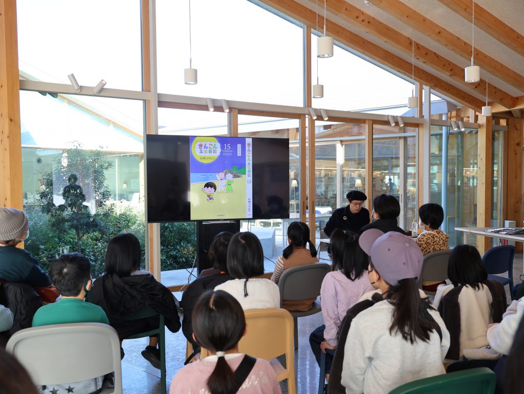 2025年12月7日(日)、高知新聞4コママンガに掲載されているきんこん土佐日記の作者、村岡マサヒロさんによるトーク&おえかきゲームを開催しました。前半は、マンガの制作秘話やマンガ家になろうと思ったエピソードのおはなしをしていただきました。後半は、みんなでおえかきゲームをしてひとつの物語をつくりました。子どもも大人も夢中になって絵を描き、楽しいひとときとなりました!