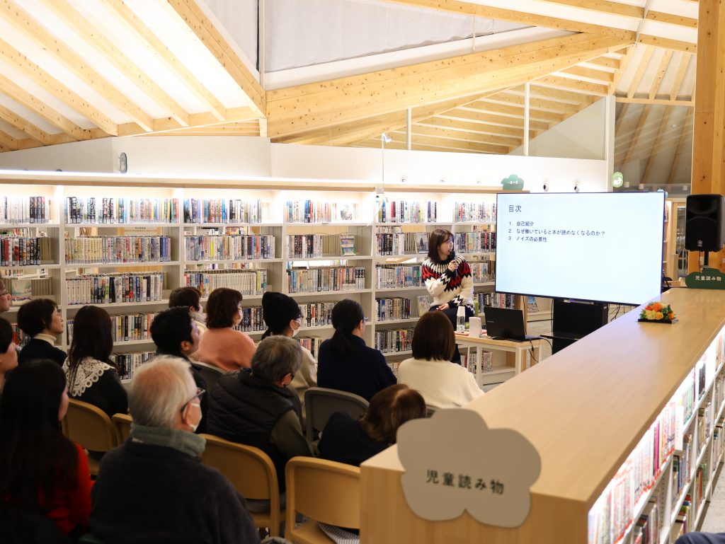 1月4日(日)にさくと開館1周年記念イベントとして、高知県出身の文芸評論家で、小説や古典文学、エンタメなど幅広い分野で批評や解説を手がける三宅香帆さんを招き講演をしていただきました。「読書の未来と歴史」と題し、著書でベストセラーとなった『なぜ働いていると本が読めなくなるのか』に基づいたお話を伺うことができました。