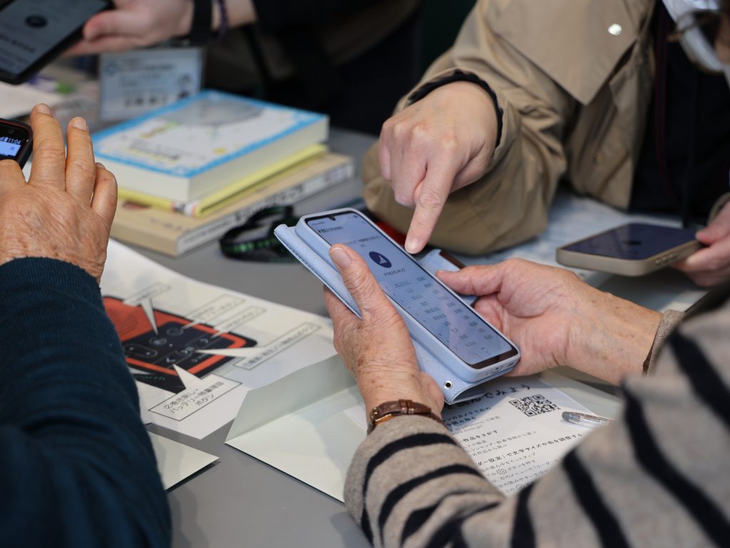 後半は「さくとのバリアフリー図書ツアー」を実施し、館内の設備や関連書籍を実際に見て回りました。最後には、電子図書館「青空文庫」に自身のスマートフォンでアクセスし、文字の拡大や音声読み上げ機能を活用して、自分に合った読書スタイルを体験していただきました。